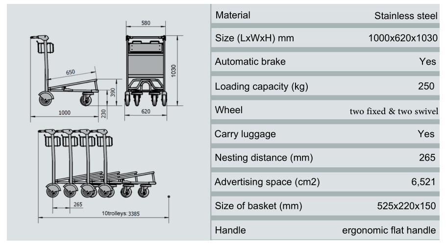 TSST-B stainless steel airport trolley